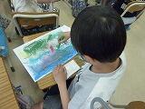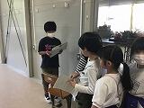 図工の学習で「ふくろの中には何が・・・」の作品を作りました。持ってきた紙袋の中にそれぞれ考えたテーマに沿った世界を作り出していきます。「おばけやしきの世界」「宙に浮く世界」「恐竜いっぱいの世界」などさまざまな世界を思い思いに創作していました。ふくろがつぶれにくくなるようにする工夫や素材の形状や質感を生かした造形物の工夫などを凝らしている作品が多く見られました。