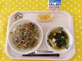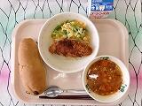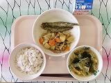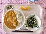 22日は,大人気のポークカレーライスです。具の豚肉は,弱火でじっくり1時間かけて蒸し煮し,豚肉のうまみを残したままやわらかく仕上げています。この時に出たスープもカレーに入れ,田中小特製カレーを作っています。