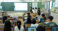 4年2組の総合では、「千葉県くじ引きの旅!」と題して、千葉県の市町村について調べ学習を行いました。班で、くじを引き、担当の市町村について調べ、スライドにまとめ、発表をしました。どの班も見る相手を意識して、工夫を凝らしたスライドを作成していました。最後にクイズを盛り込んだ班の発表では、みんなが手を挙げて、大盛り上がりしていました。これからの学習も楽しみです。