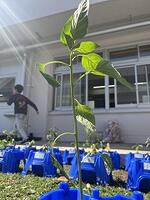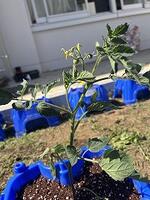 苗を植えてすぐに暴風雨だったため,若干ななめになっている苗もありますが,愛情たっぷり美味しい野菜が収穫できるように水やりを頑張っています。