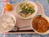 牛乳 ごはん 鯖のカレー焼き 野菜サラダ ミネストローネ みかん