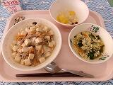 牛乳 肉豆腐丼 わかめとたまごのスープ フルーツみつ豆 大豆小魚