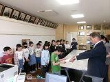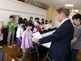 学級委員の任命式が行われました。学級委員は3年生以上全クラス2名ずついます。