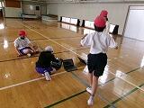 6年生の体育の時間でした。PCを体育館に持ち込み,ダンスの練習をしていました。