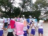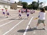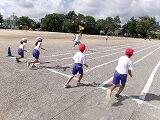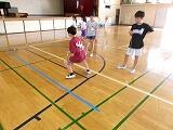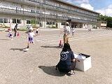 「どうだった?」と聞くと「楽しかった~」「またやりた~い」「できないことができた」「ジャンプして入るのが楽しかった」など笑顔いっぱいでした。本日は1,2,3,5組です。4組は明日です。写真下段右にあるように熱中症予防のために水筒も持ち込んでいます。
