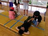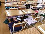 自分からは次の内容を話しました。「地震はいつ,どこで起こるか分からないこと」「休み時間や登下校,お家で留守番中に起こったらなどと考えてみること」「まずは自分で自分の身を守ること」最後に身の守り方の1つを実際にやってみました。(頭を腕で覆い隠す動作)