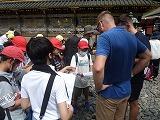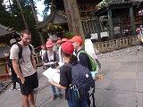 今回の修学旅行のスローガンは「日光で学べ!マナー・責任・世界・歴史 さあ最高の修学旅行へ」でした。子ども達はこのスローガンを達成しようとチャレンジをしました。1つは英会話チャレンジです。東照宮付近で観光に来ている外国人に英語で話しかけコミュニケーションをはかることです。最初はどこまでできるか心配しましたが,全てのグループが挨拶や会話を楽しんでいました。以下が写真です。