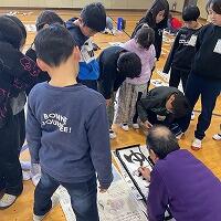 体育館であべ先生が丁寧に書き方を教えてくれます。