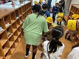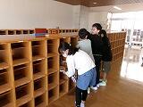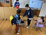1年生のいろいろなお手伝いを6年生がしています。朝の登校と教室での準備、給食の片づけも手伝っています。