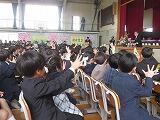| 今,みんなが言った目標や意気込みはどれも大切だし,素晴らしいです。その思いを忘れずに1学期がんばってください。今年もみんなが笑顔になる学校をつくっていきます。自分だけじゃなく,友達も,おうちの人も,先生方も,地域の人も笑顔にするためにどうしたらいいかを考えてください。校長先生や先生方もがんばりますが,みんなもがんばらないと笑顔の学校にはなりません。一緒にみんなが笑顔になる学校をつくっていきましょう。(後略) |