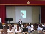 午後は職員でさらに研修をしようと思いましたが、教育相談週間ということもあり、保護者の方にも菊池先生のお話を聞いていただく機会をもったらどうだろうということでこの講演会にいたりました。演題は「子どもを育むほめ言葉が家族の絆も深める」でした。約70名の保護者の方においでいただきたくさんの学びがありました。