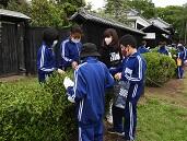 予定では,4月27日(水)が茶摘みの日でした。しかし,自然現象には勝てず,やむなく延期を決定。それでも昨日28日(木),1年生による茶摘みが行われました。1年生120名は旧吉田邸歴史公園。100名弱は田中中校地内のお茶の木からお茶の葉を摘みました。