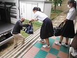 式場は紅白幕貼りから卒業生の座席と保護者席を並べること含め,全て2年生が担当。1年生は前日校地内の清掃を行いました。