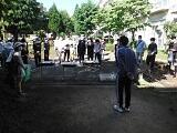 本日は,8:00からものづくり体験,農業講話。10:55に大豆畑へ移動し,11:30から作業。昼食後に大豆加工品づくりとしまして,ホット牛乳きな粉ドリンクを農家の方々と作り,お腹に収め,13:15作業再開。畝づくり→種まき→防鳥用の糸張りを行った後,帰宿。夕食後に,18:15からキャンプファイヤーの予定となっております。