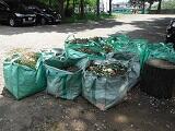 時間は30分と短かったものの,52名の参加者のおかげで,草刈り専用のごみ袋として用意した12袋全てが,刈り取った草でぎっしり詰まりました。