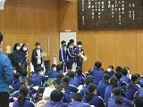 開けた23日(金)の二学期終業式は,PC室からMeetを使っての全校配信。終了後には,先達て行われた全校集会で行えなかった表彰と,冬休みの生活について,生徒指導主任より話がありました。
