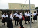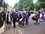 雨は降っていないものの,曇り空の下,2年生の林間学校が始まりました。