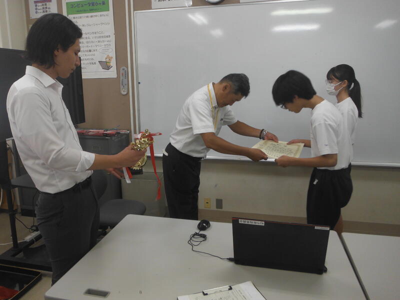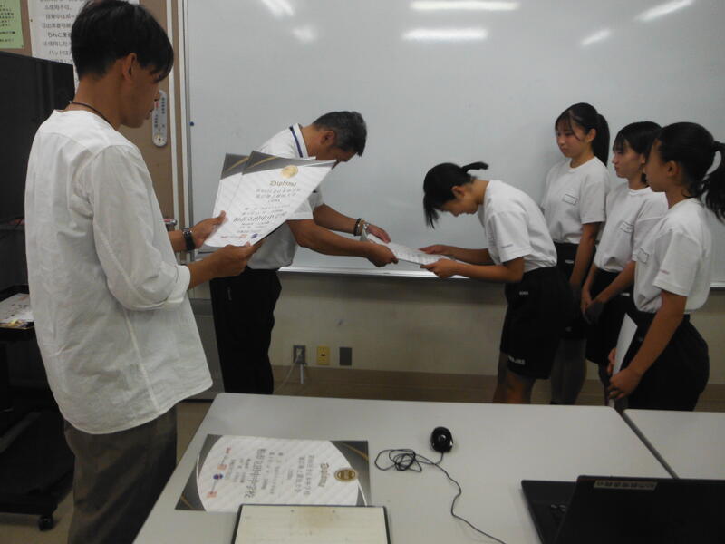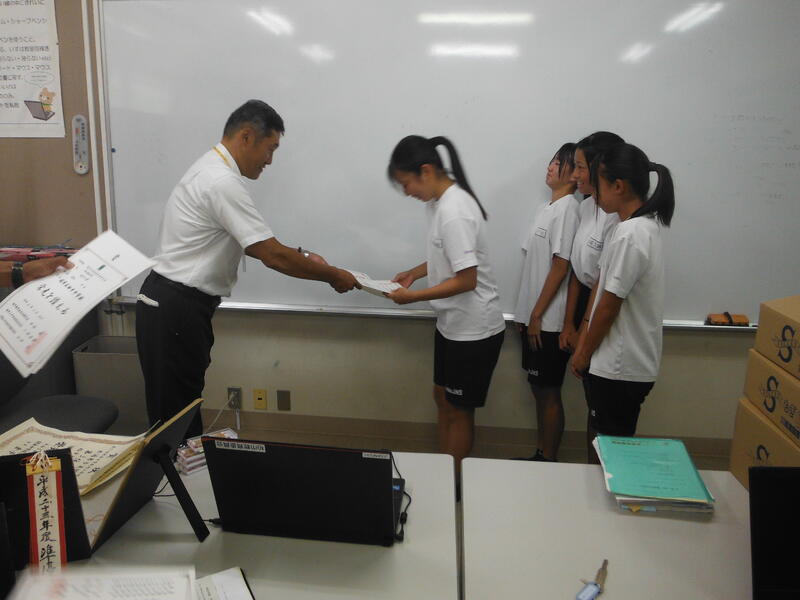 1学期の終業式では、各学年の代表生徒からの話と部活動等での表彰を行いました。