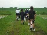 柏染谷農場の田んぼまでは,自転車で向かう者は田中中学校に集合して,集団で向かいました。一方,田んぼまで,保護者に送っていただいた現地集合組。この両方を足した14名が,田植えを体験させていただきました。植えた稲の名は「ゆめあおば」。飼料用として,実った暁には使われるとのことでした。以前は,日本人一人当たり年間120㎏も消費されていたお米ですが,現在では54㎏,以前の半分以下にまで落ち込んだため,今回田植えする稲のような使われ方もされる,と染谷さんは語られていました。田中小や田中北小で体験済み,の生徒と,そうではない生徒とでは植えていくにつれ,植え方,植えるスピードに差が見られましたが,いずれにしても,お米の現状,そして,お米が作られる過程を学ぶことができた,有意義な1時間半でした。
