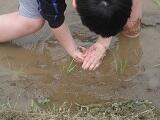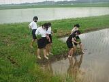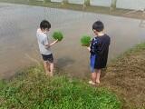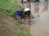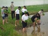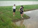 最後の方では,カエルを発見。科学実験部だけに,その存在に引きつけられて,田植えを忘れる?一幕もみられました。こっそり,生徒がやり残した部分を植えてくださる染谷さんの姿,写真撮影のために同行してくださった高荒さんの支えもあったおかげで,残されていたひと区画を植え終えられました。お力添えいただきました方々に,お礼申し上げます。有難うございました。