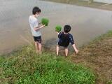 天候的に,実施が危ぶまれた今年度の科学実験部による「田植え」でしたが,この日の為に,柏染谷農場の染谷さんが残してくださっていた田んぼにて行われました。
