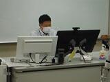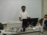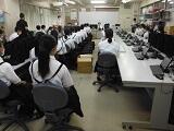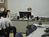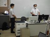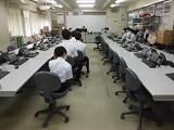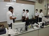 リモート会場はPC室。始業式後に行われる全校表彰の対象者が集まる中,校長の話に続いて,各学年の代表生徒から,行事の多い二学期に懸ける学年の思いが語られ,さらに日々の行動に期待が高まりました。式はここで終了となり,生徒指導主任の話,全校表彰へと移りました