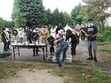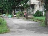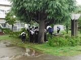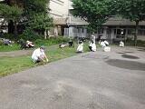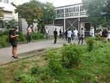 集合時間の8時前から,陸上部の生徒さんと顧問の先生が,先陣を切って除草作業を開始。その姿に押されたかの如く,続々と保護者の方々が集まってきてくださり,8時10分から除草作業が始まりました。