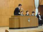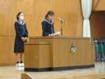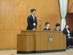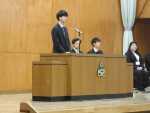再び,先程とは異なる前期の学校生活に関わる3つのお話を入澤校長から生徒へ投げかけ,新2,3年を代表する生徒2名の新しい生活において,各学年が目指すもの,一人一人に目指してほしいもの等が語られて,2,3,4学年紹介,部活動顧問紹介を経た後,式は終了しました。