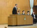 その後,代表生徒による歓迎の言葉へと続き,始業式へ。修了式以来の田中中校歌が,体育館中に響き渡りました。
