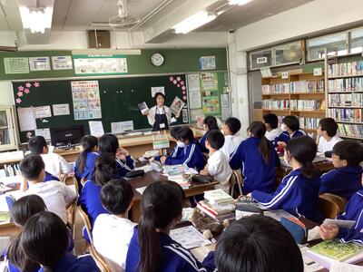 1年生の国語の時間に、学校図書館のオリエンテーションが行われました。