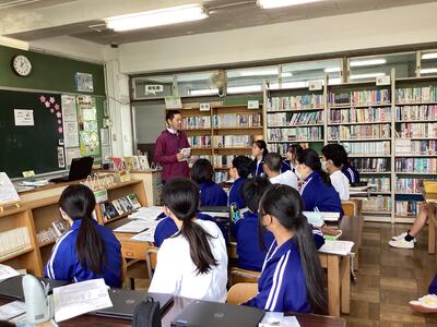 授業には田中中学校図書館長・入澤校長先生も来館し、