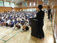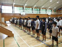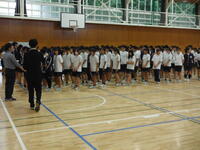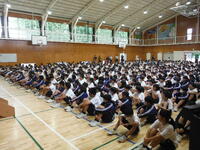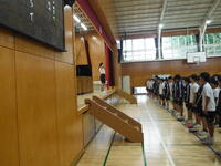 …先程5時間目帯に,前期と後期の切替式、を行いました。全校生徒全員が体育館に集い,対面形式で実施しました。コロナ禍においては感染予防の為に,密を避ける,ということから,リモートでの集会が行われていました。