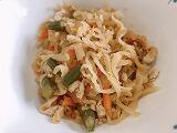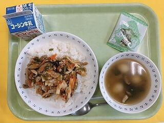 チンジャオロースとは、ピーマンやタケノコ、肉を細切りにして塩味で味付けした中華料理です。今日は豚肉をたくさん使って作りました。豚肉はビタミンB1が含まれており、疲労回復などに働きます。