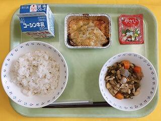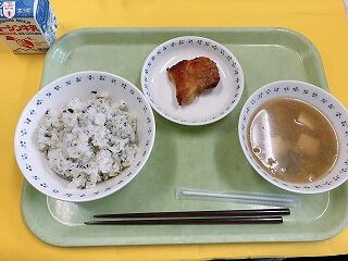 今日の鶏肉はオレンジマーマレードとニンニク、醤油を混ぜたタレに漬け込み、オーブンでこんがりと焼き上げました。味噌汁は加熱したごまを仕上げに合わせ風味よく仕上げました。