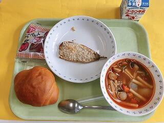 今日の鰯は生姜とニンニクと醤油で下味をつけ、パン粉をまぶしてオーブンで焼きました。ミニストローネスープは、ポークフランクや豚肉、マカロニをトマトで煮込んだスープになっています。仕上げにチーズをいれているのでコクが深く仕上がりました。