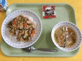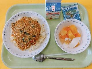 ※本日のデザートはすいかの予定でしたが、物資納入の関係で冷凍りんごに変更になりました。
