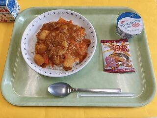 今日のハヤシライスは、豚肉やじゃがいも、人参、マッシュルームなどを煮込んで作りました。暑いので、フローズンヨーグルトでひんやり感を感じてもらえたらと思います。本日で1学期の給食は最後となります。夏休みもしっかり食事をとって体調を崩さないで過ごしてもらえたらと思います。