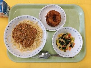 今日は給食室でドーナツを手作りしました。豆腐をミックス粉に練りこんでいるためしっとりと仕上がりました。生徒たちも、喜んで食べてくれていました。