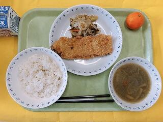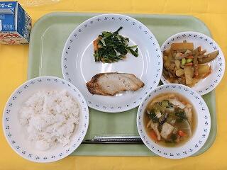 今日は明日が千葉県民の日ということで、地産地消献立です。いわしは千葉県が漁獲量が1位です。今日は片栗粉で揚げて醤油タレをかけてかば焼きにしました。味噌汁のかぶは柏の特産物です。油揚げとの相性が抜群です。