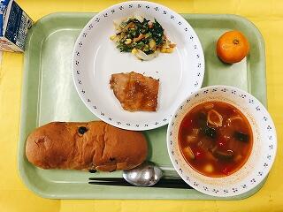 今日は鶏肉を生姜や醤油で下味をつけ、オーブンで焼きました。ミニストローネはズッキーニや赤ピーマンなどの旬な夏野菜をいれました。今日で1学期の給食は最終ですが、生徒のみなさんには夏休み中もバランス良い食事を心がけてもらいたいと思います。