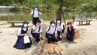奈良に到着後は、東大寺にて集合写真を撮影し、全員で大仏殿を見学しました。その後は、班別行動のスタートです。まずは奈良公園内で、鹿と一緒に写真を撮ったり、鹿せんべいをあげたりしてから、班で計画した見学場所を訪れ、京都の宿舎を目指します。