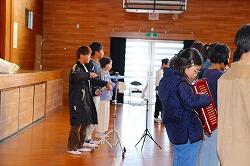 18日と19日に,2学期の終業式で全校のみんなに演奏を披露するため,体育館で発表練習を行いました。