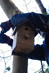 そこで,子どもたちと一緒に野鳥を身近に感じられるよう,校内に巣箱を設置しました。
