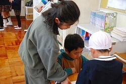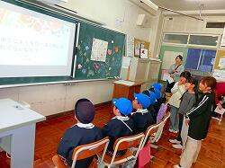 業間休みには校庭で子供たちと元気に遊ぶ姿が見られ,子供たちともすぐに打ち解け,自然に学校生活に溶け込んでいます。また,3年生の保健の授業を見学するなど,学びを深めています。