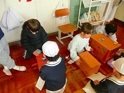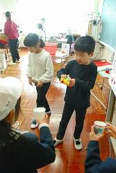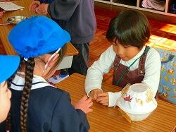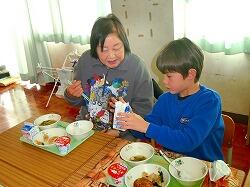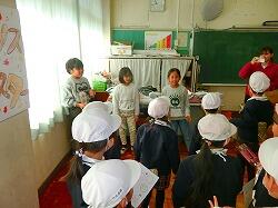 昔は瓶牛乳だったというお話から,紙パック牛乳の開け方を1年生が地域の方に教えてあげる微笑ましい場面も見られました。