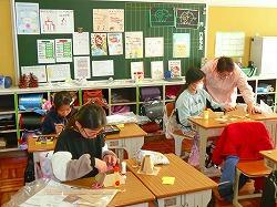 交流会では,前半と後半に分かれて,それぞれの教室で活動を体験してもらいました。
