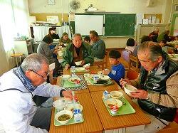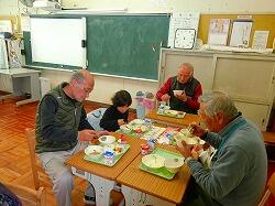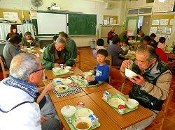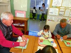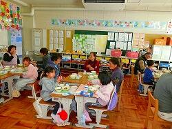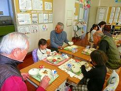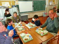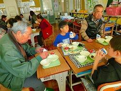 昔遊びの活動の後,地域の皆様を教室にお招きし,子どもたちと一緒に給食を召し上がっていただきました。