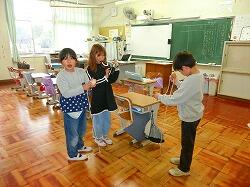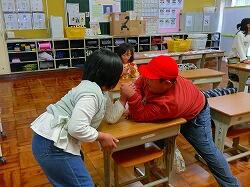 ALTの先生と一緒に給食を食べたり,昼休みに遊んだりと,子どもたちは特別な時間を楽しんでいました。