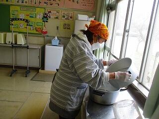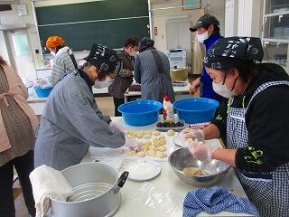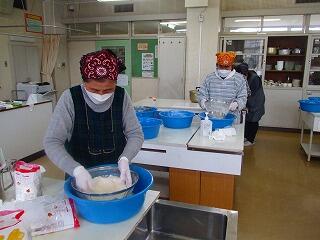 3年生のばらっぱまんじゅう作りでは,朝から地域の方が家庭科室で準備してくださいました。