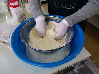 休ませた生地を分けます。テーブルごとに作業しやすいように材料を分けてくださいます。ばらっぱも数えてくれました。